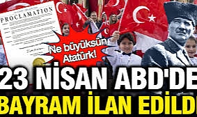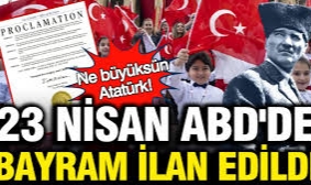 Dünyanın ilk ve tek çocuk bayramı olan 23 Nisan, ABD'nin başşehri Washington'a bağlı Seattle kentinde de bayram olarak kabul edildi. Türkiye'de milli bayramların içi boşaltılmaya ve cumhuriyet değerleri aşındırılmaya çalışılırken ABD'de alınan bu karar dikkat çekti.Çevirmen İlknur Özdemir'in sosyal medya hesabından yaptığı duyuruya göre, ABD’nin büyük şehirlerinden Seattle’ın Belediye Başkanı Katie B. Wilson, 23 Nisan’ın önemini ve değerini anlattıktan sonra bu günü kendisinin de şehrinde Ulusal Egemenlik ve Çocuk Bayramı olarak ilan ettiğini bir bildiriyle duyurdu. 23 Nisan'da ABD'nin Ankara Büyükelçiliği Atatürk'süz ve Türk bayrağı olmadan yayınladığı kutlama mesajı tepki çekerken, ABD'nin Seattle şehrinden gelen gelen bu haber cumhuriyetin kurucu Atatürk'ün evrensel değerini bir kez daha gösterirdi.İşte o karar: